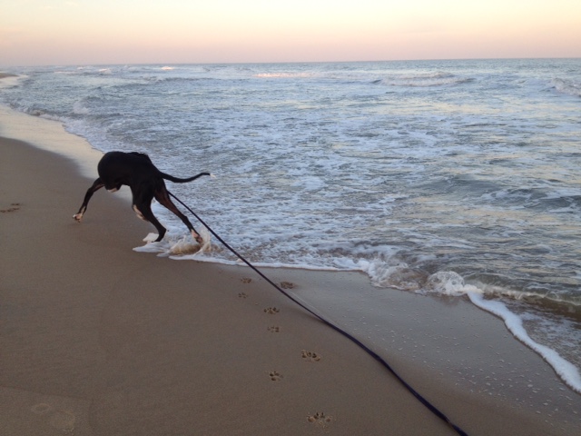 After we explored the city, we went to the beach. Zuma was very excited to leap in the waves and gallop around on the longe line like a lunatic puppy. She is 3 1/2 years old now and, with Great Danes having such a short lifetime expectancy, it does my heart good to see her goof off.