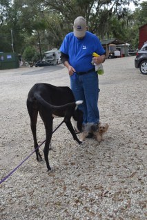In the evenings Kelly, Doug and the dogs and I are enjoying a campfire at “our place”. Zuma and Phoebe are now the dearest of friends and like short walks together and flopping lazily on the rug by our door within sight of each other in the evenings. Little Peanut the Yorkie in a nearby RV loves Zuma and is very confident; he has no fear of her and she adores him.