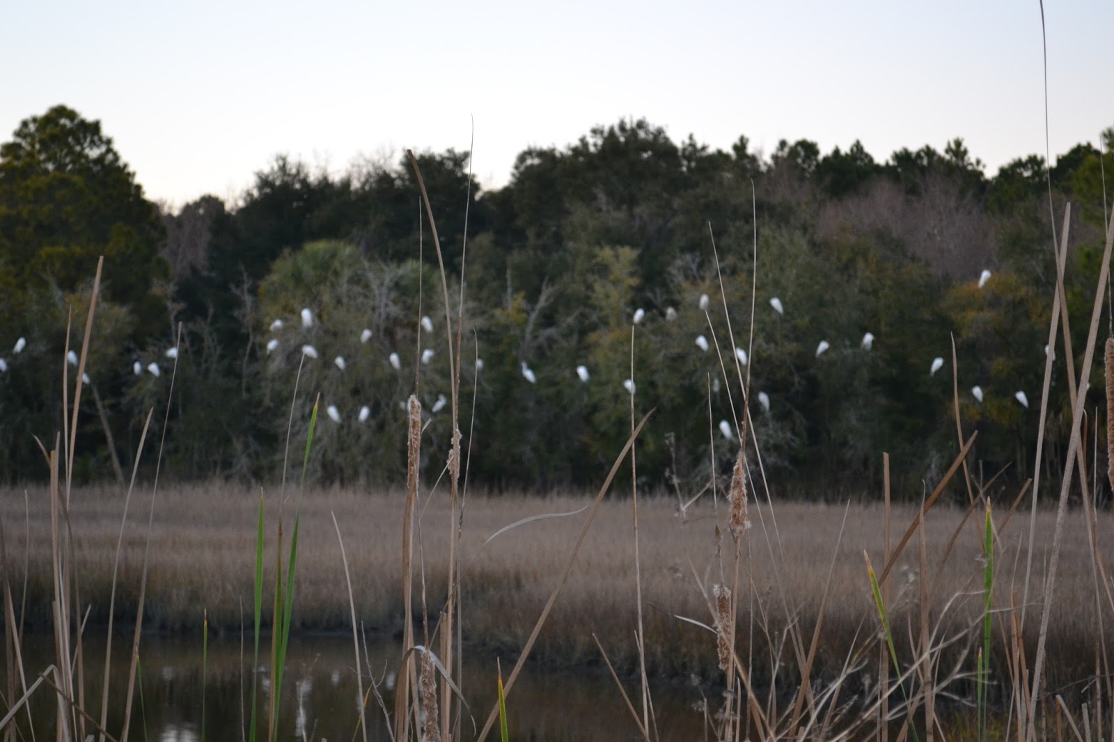 In the evenings when we go for a walk, we often see 50 or more White Herons perched in the trees along the river/marsh. They remind me of a gloriously decorated Christmas tree!