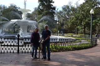We drove into Savannah today and walked Zuma all around Forsythe Park and River Street. She loves it.