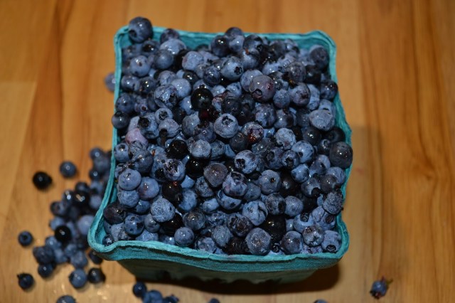 The blueberries from Maine taste nothing like blueberries from anywhere else. They are petite and burst with luscious freshness and, after a few mouthfuls, they turn your teeth blue. I kid you not. It’s awesome. It’s also a great party trick. Plus, they are a natural antioxidant for all you people out there who wanna be healthy and all that stuff. Doug’s flights were delayed delayed delayed and he had to wait for hours for a flight from Charlotte, NC but he wouldn’t stay over in a hotel because he wanted these indigo-colored babies to arrive fresh. What a nice guy. We shared some with our friends here and froze the rest for later. After I ate so many I had blue teeth.