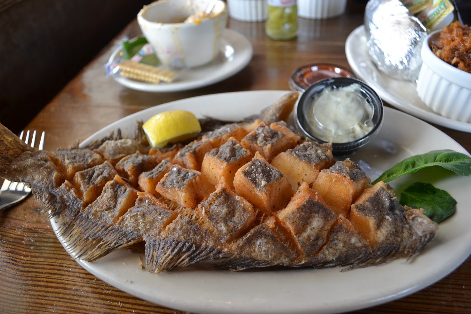 Kelly recommended Skippers’ Fish Camp for lunch so we went there that day and again two days later for another day trip fresh whole grilled Flounder and crab dip.