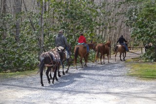 Then we arrived at our destination, Cataloochie. It was once the largest settlement in the area and now there are only a handful of barns and homes left as the Park bought the farming settlers out decades ago. What was once a fertile valley filled with farming families and a thriving community is now part of the Park. We had heard that there are Elk there and we found fresh scat from them but didn’t spot any of these beautiful animals. We drove to the end of the road and met some people from Iowa who were camping there and they said they’d seen 25 Elk the day before at 3 p.m. We had to leave but we’ll go back and hopefully see some. They said they watched the herd come out of the hills and graze, then headed back to their campsite and within 5 feet of their vehicle there were to magnificent males; they showed us their photos. Unfortunately, because of bears, bobcats, elk and other wild animals, dogs are not allowed on the trails. However, horses are and we met a group. What a fabulous place to ride!