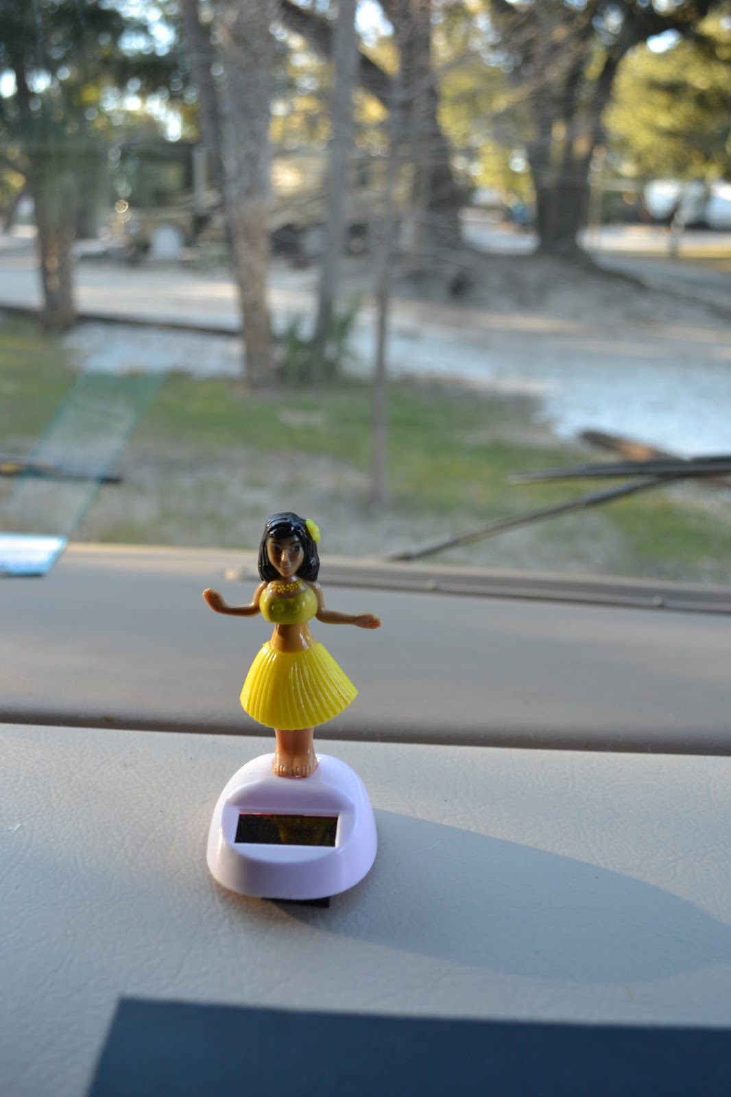 Today we picked up the RV. Doug has named her “Hula Girl” after the little dancing solar-powered plastic chick dashboard ornament we bought at South Of The Border.